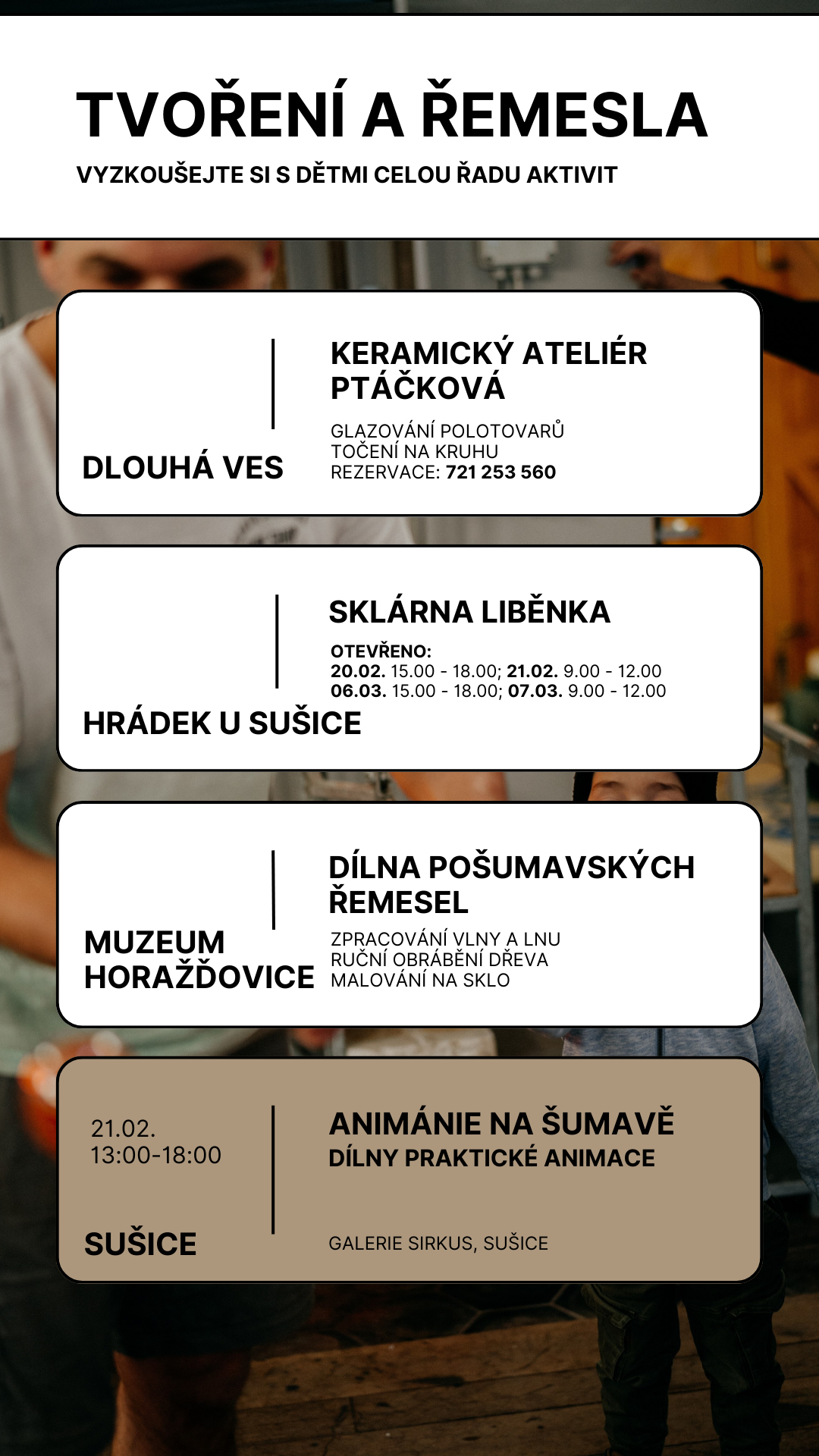 A největším svátkem pak bude Animánie na Šumavě 21.2., kdy můžete vyrazit na dílny praktické animace a plno prima filmů.