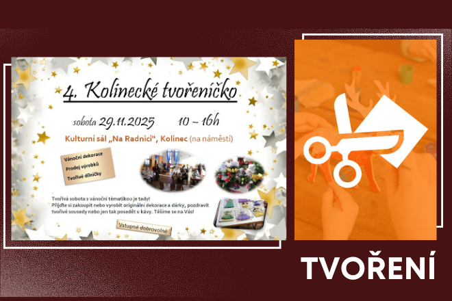 Přijďte si zakoupit nebo vyrobit originální dekorace a dárky. Kulturní sál "Na Radnici" v Kolinci od 10:00 do 16:00 hodin.