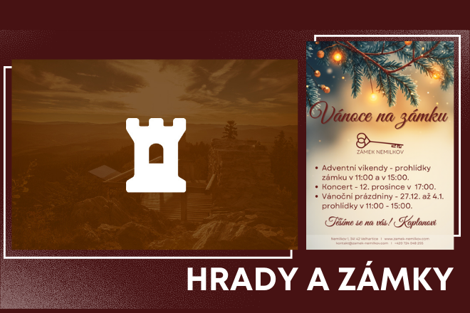 Prohlídky zámku Nemilkov o vánočních prázdninách v 11:00 a 15:00 hodin. Přijďte se potěšit vánoční atmosférou a novými přírůstky v obnově zámku.