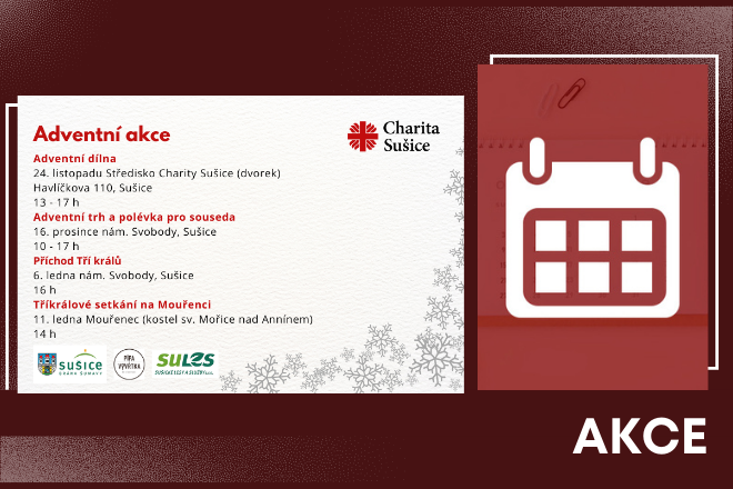 Adventní trh a polévka pro souseda - pořádá Charita Sušice na sušickém náměstí v době od 10:00 do 17:00 hodin